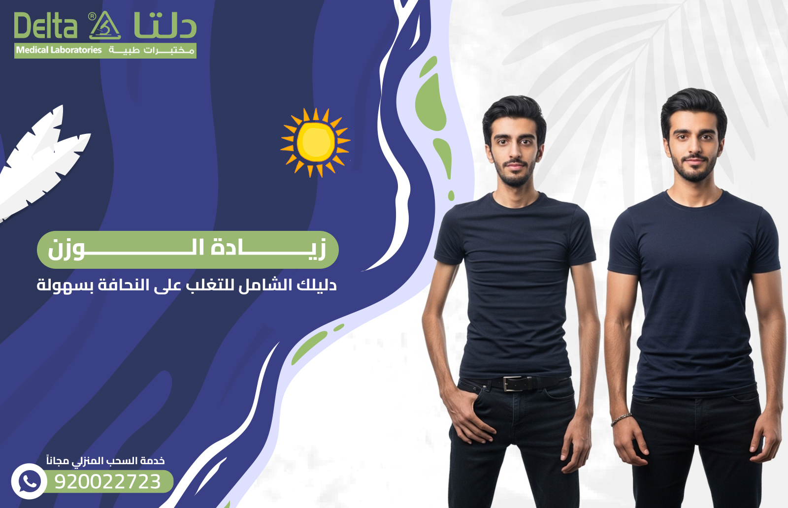 تُدرك مختبرات دلتا الطبية، أن النحافة ليست مجرد مظهر خارجي، بل هي مشكلة صحية قد تُرهق المريض نفسيًا وجسديًا؛ لذا حرصت على إعداد قائمة متكاملة من الوجبات الصحية الغنية بالعناصر الغذائية، والتي تُساعد على التخلص من النحافة، وزيادة الوزن بطريقة آمنة ومتوازنة، بعيدًا عن الأساليب غير الصحية: