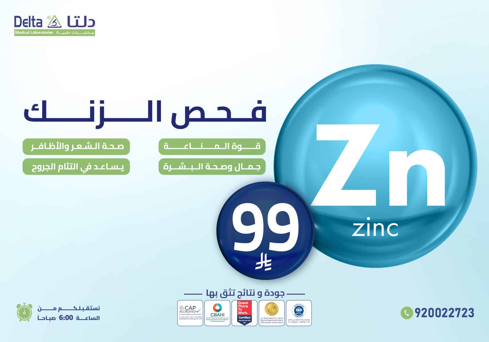 يقيس هذا التحليل مستوى الزنك في الدم، وهو عنصر أساسي لدعم جهاز المناعة، وتسريع التئام الجروح، والحفاظ على صحة الجلد والشعر، إضافة إلى دوره المهم في النمو ووظائف الأعصاب وحاسة التذوق. يساعد تحليل الزنك في الكشف عن نقصه أو زيادته، والتي قد ترتبط بضعف المناعة، تساقط الشعر، تأخر الشفاء، أو اضطرابات النمو والتركيز.
