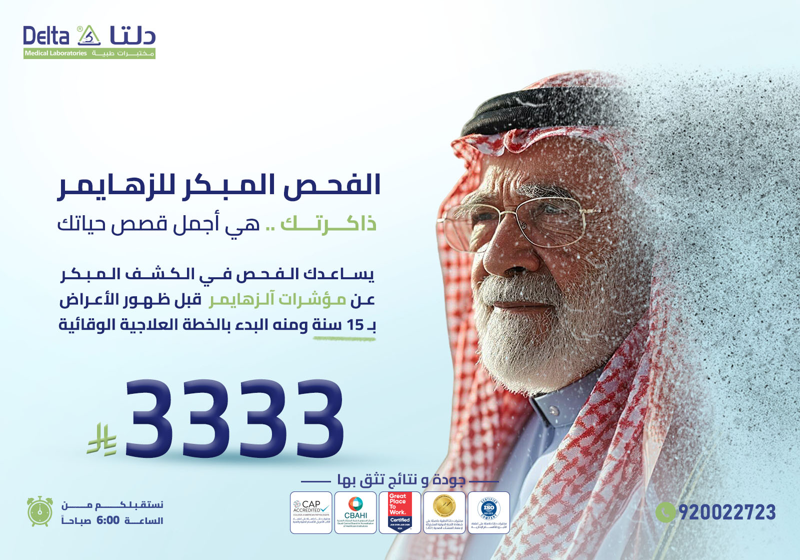 الزهايمر : تقدر تعرف قبل لا تبدأ الأعراض! “فحص الزهايمر يكشف لك عوامل الخطورة قبل 15 سنة من ظهورها! احمِ ذاكرتك من بدري… لأن الكشف المبكر يفرق