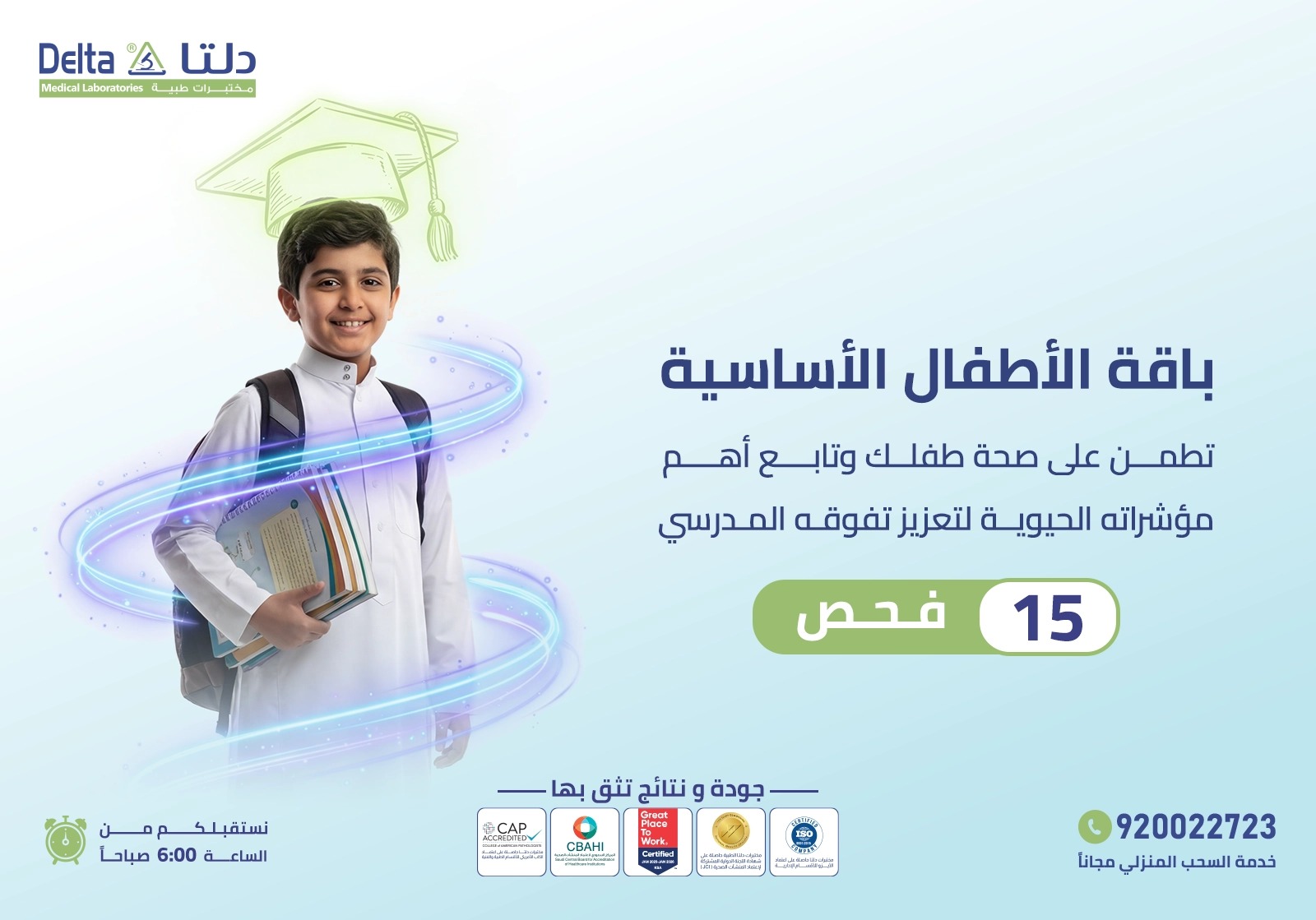 تطمن على صحة أطفالك وتابع أهم مؤشراتهم الحيوية لتعزيز تفوقهم المدرسي من خلال باقة تشمل أهم الفحوصات
