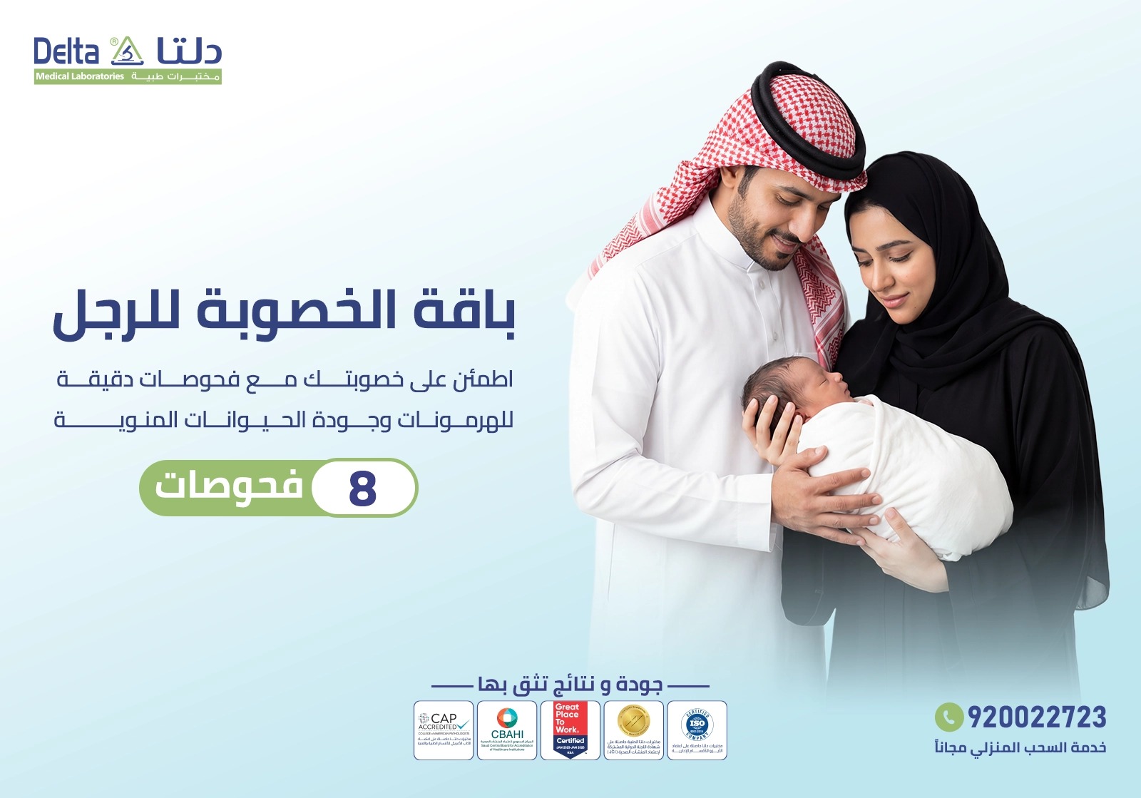 تعتمد الصحة الإنجابية عند الرجال على توازن هرمونات الخصوبة وجودة الحيوانات المنوية، وهو ما توفره باقة الخصوبة لك، حيث أنها تُساعدك على تقييم هذه المؤشرات بدقة وتهدف إلى الكشف عن مدى توازن الهرمونات الأساسية ووظائف الغدد المرتبطة بصحتك .