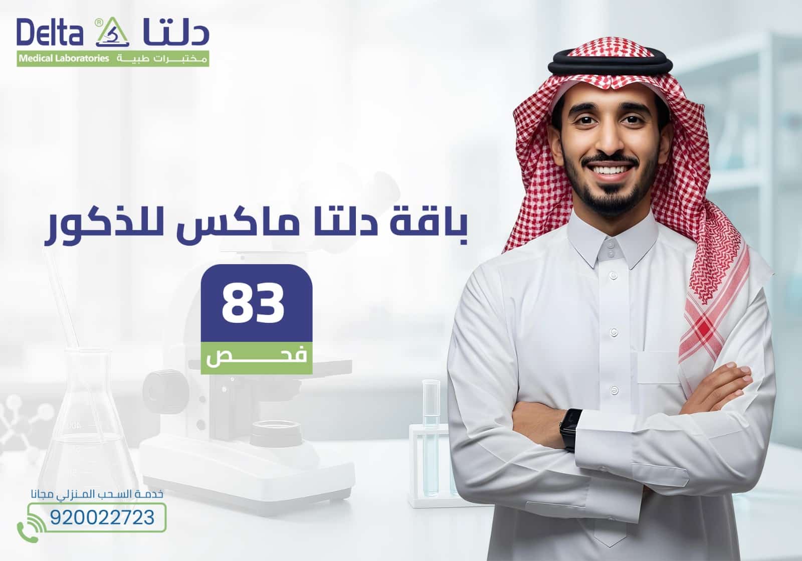 لا تنتظر ظهور الأعراض المرضية عليك، وقم بمتابعة صحتك بشكل دوري من خلال خطوة واحدة، تتمثل في باقة دلتا ماكس للذكور، والتي تضم 81 فحص، يُمكنك من إلقاء نظرة شاملة حول صحة جسمك الداخلية، عن طريق قياس مستويات الفيتامينات والمعادن والسكر، إلى جانب تقييم الوظائف الحيوية مثل الكلى والكبد والدم والمناعة، بالإضافة إلى الهرمونات والغدد، والكشف المُبكر عن السرطان؛ فبادر اليوم بحجز الباقة والاطمئنان على صحتك.