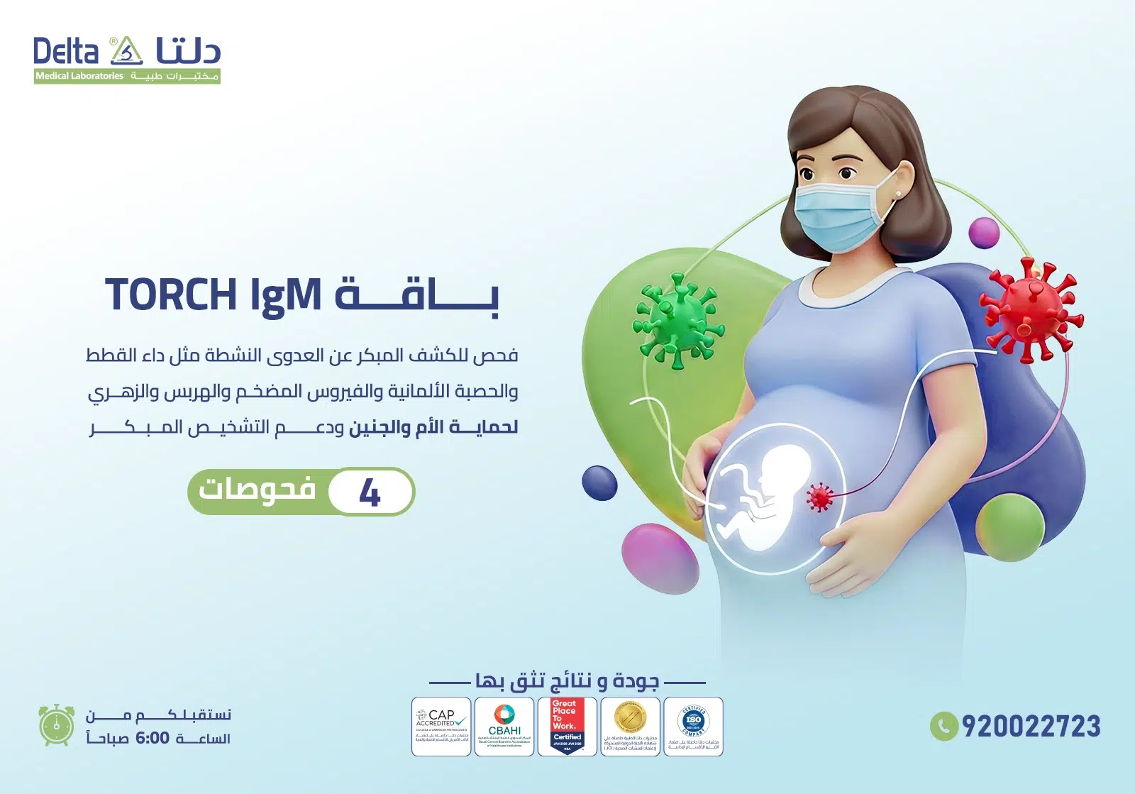 تُعد باقة TORCH IgM من الفحوصات المهمة للكشف المبكر عن العدوى الحديثة أو النشطة، خاصةً لدى السيدات خلال فترة الحمل أو التخطيط له، حيث أنها تُساعد هذه الباقة في الكشف عن عوامل رئيسية، مما يُساهم في تقييم الحالة الصحية بدقة واتخاذ الإجراءات الطبية المناسبة لحماية الأم والجنين .