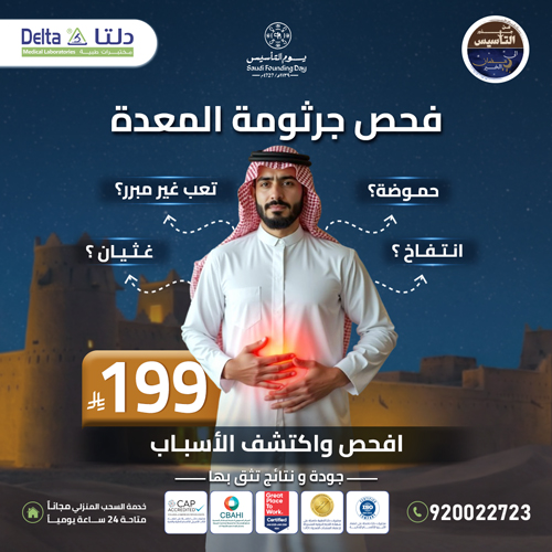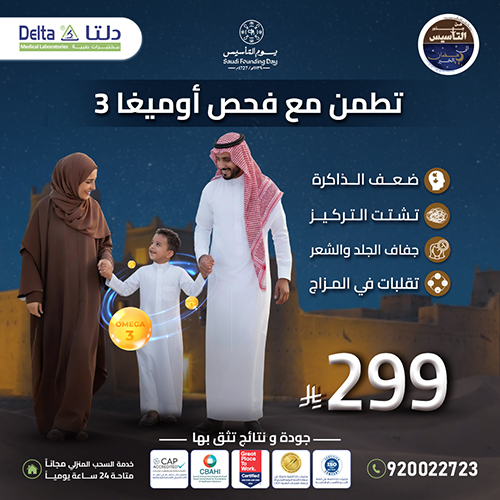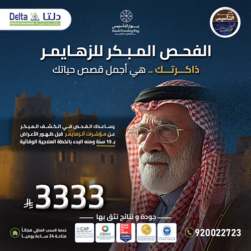 تحت شعار من جذور التأسيس إلى رمضان الخير، تقدم لكم مختبرات دلتا باقة الصحة الشاملة، التي تشمل فحوصات متكاملة لتقييم: صحة الغدة الدرقية، مجموعة الدهو...