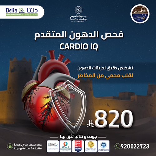 فحص الدهون المتقدم "فحص الدهون المتقدم يعطيك تقييم أدق لصحة قلبك وشرايينك، ويكشف المخاطر الخفية التي لا تظهر في الفحوصات التقليدية."